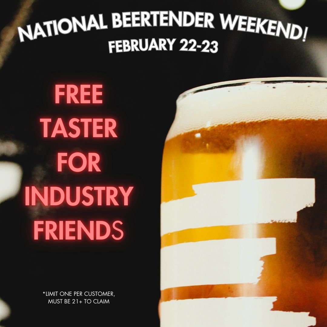 Join us for National Beertender Weekend by stopping by the brewery to hang out with our fantastic team and try our wide selection of craft beer, seltzer, tea, and more! If you’re in the industry, let us treat you to a free taster to show our appreciation for this wonderful community! *Limit 1 per customer, must be 21+ to redeem.
