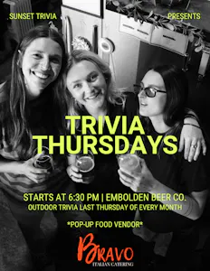 Hosted by Sunset Trivia, this is your chance to show off your smarts and enjoy a night out with friends.